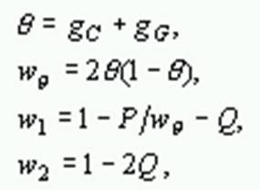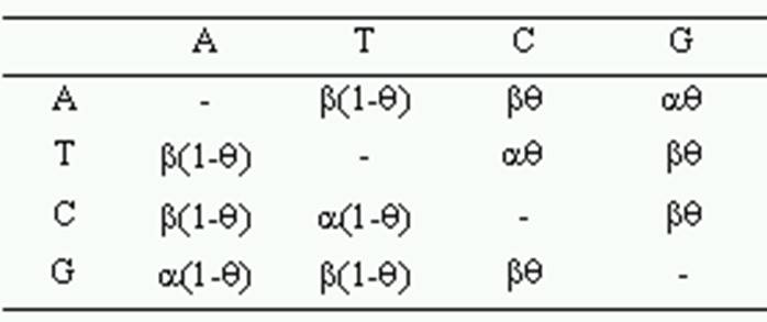 where P and Q are the proportion of sites with transitional and transversional differences respectively, and